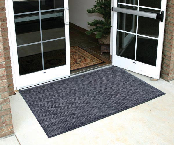 Attractive Herringbone needle-punch carpet cleans shoes from any mat direction.