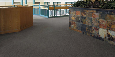 Heavy-duty pin-top Carpet Tile is excellent for heavy-traffic applications. The 33.9-ounce polypropylene UV stable pin design fiber scrapes dirt and moisture from foot traffic. Commonly used in high-traffic entrances, vestibules, lobbies, retail stores, airports, fitness rooms, and wall-to-wall applications.